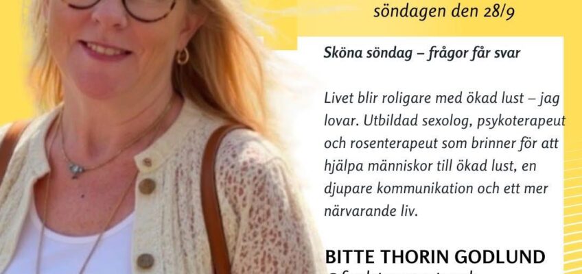 Kanske något du funderat på kring relationer, välmående eller lust? Bitte ger svar med värme, klokhet och ett och annat leende—i bästa Sköna söndag-anda. Antingen på plats eller i den kommande mikropodden efter mässan.